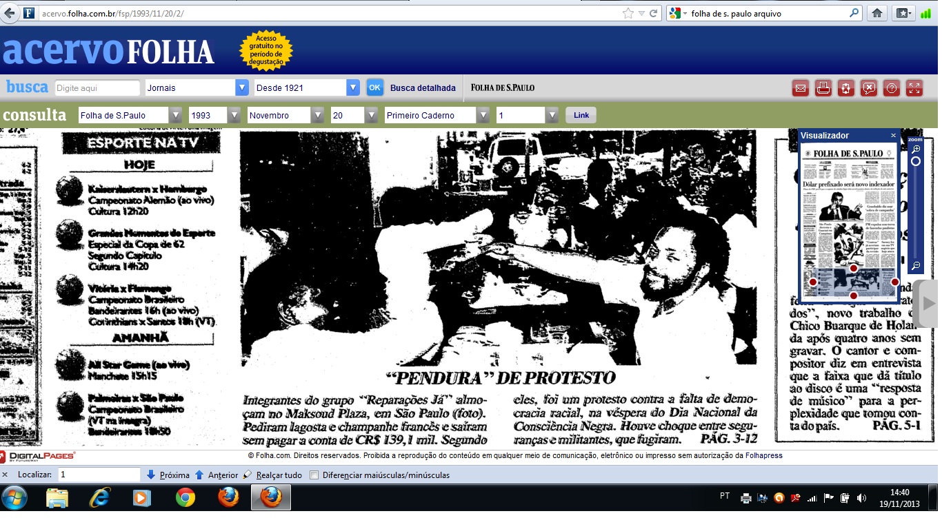 Há 20 anos a edição do maior jornal do país, Folha de S. Paulo, estampou na capa e em meia página interna a ousadia de um grupo de ativistas brasileiros que almoçou em um dos restaurantes chiques do então impenetrável hotel Maksoud Plaza, de São Paulo.