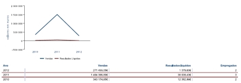 A evolução de suas vendas naquele ano foi negativa em comparação a 2011. De menos de € 1 milhão e 500 mil desabou para pouco mais de € 271 mil. Valor este equivalente a 1/3 do preço de um apartamento familiar em torre do lado da encosta do Corredor da Vitória, na capital baiana. Seu capital próprio não chegava a € 60 mil. Não possuía bens patrimoniais.