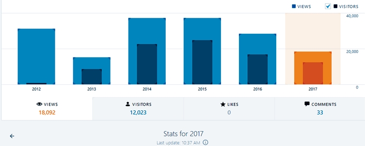 Com 19 posts (este que o leitor lê é o 20º), o menor número até agora de postagens nesses anos, as visualizações nos dez meses de 2017 (18.100) somente superam a de 2013: 14.809.