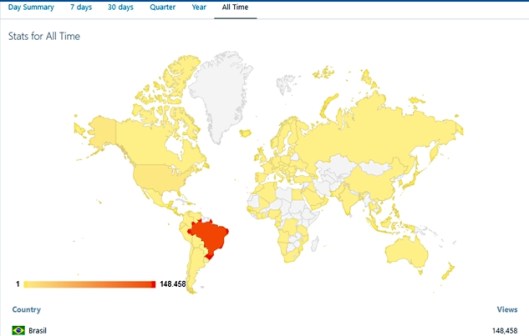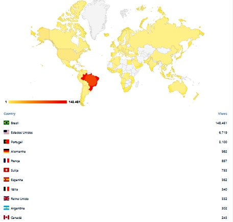 O Brasil lidera o ranking, com 148.458 visitantes no período. Com 6.718 acessos, leitores nos Estados Unidos da América (U.S.A.) vêm em segundo lugar.