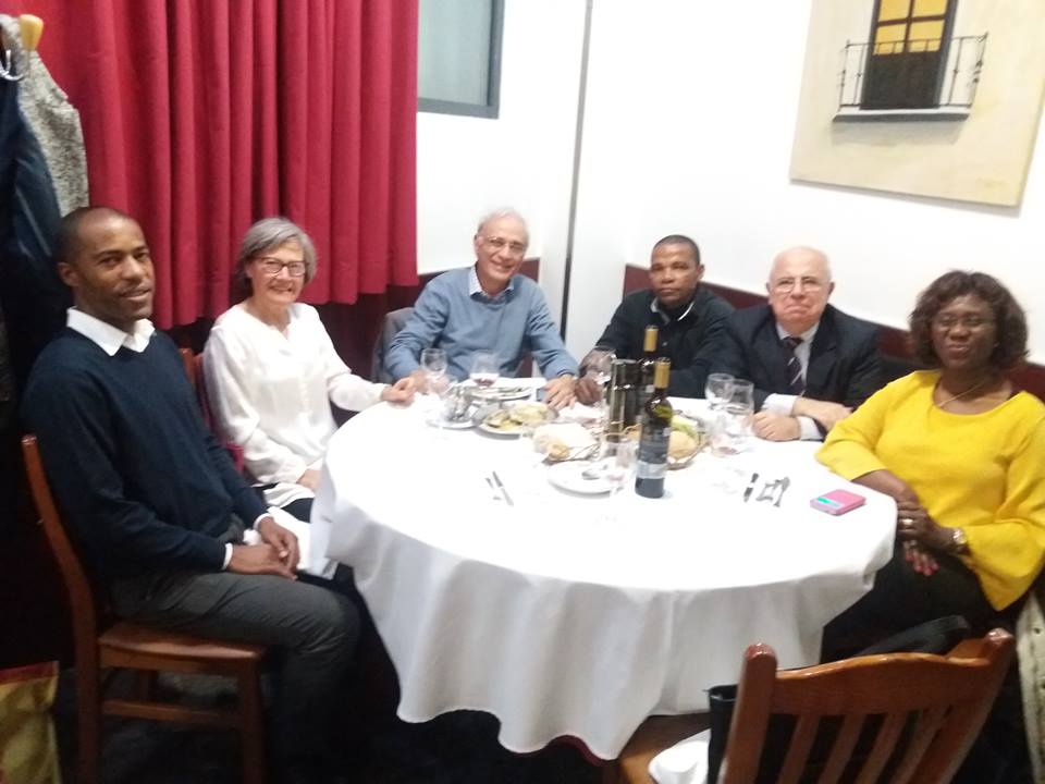 Jantar comemorativo do lançamento em Lisboa, 17/11. Da esq., Francisco Carvalho, autoridade de Cabo Verde, Margarida Marques, Manuel Carlos Silva, este autor, José Leitão e Romualda Fernandes