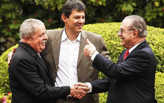 Lula e Maluf se dão as mãos na campanha que elegeu Fernando Haddad em 2012 prefeito de São Paulo pelo PT