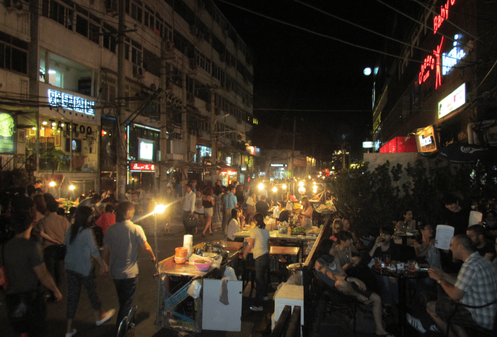 Ruas e praças do Chaoyang District são repletas de pizzarias de italianos, filiais de restaurantes, bares e boates desses encontráveis em qualquer capital da Europa e norte-América.