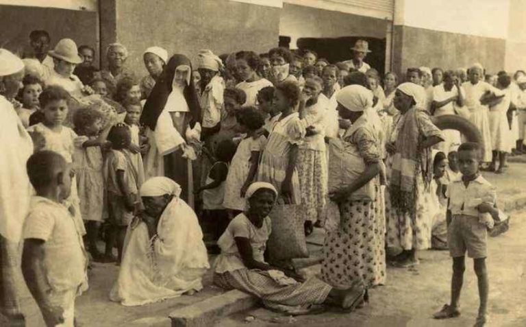 Irmã Dulce, hoje Santa Dulce dos Pobres, de batina entre os miseráveis na década de 50 ou 60 ou…