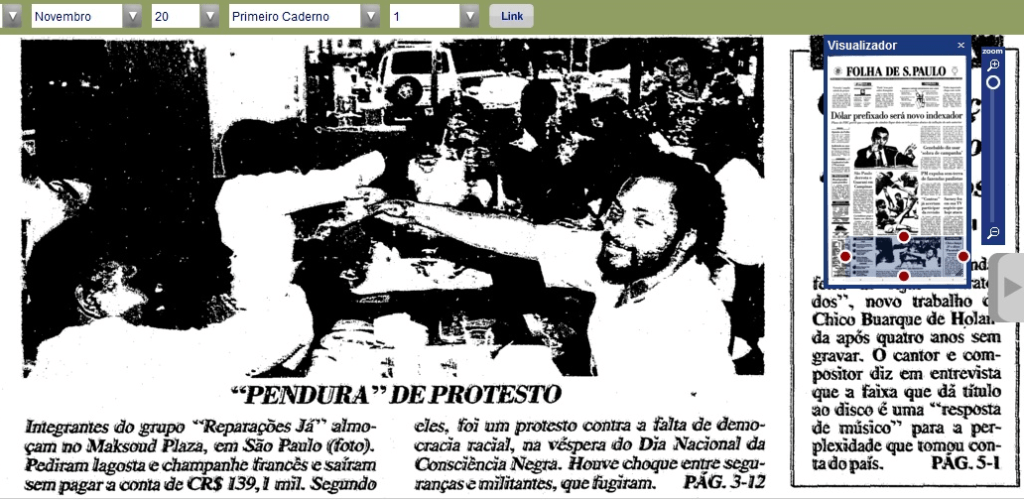 O ato, organizado a partir de articulação feita pelo então Núcleo de Consciência Negra na Universidade de São Paulo (NCN), aconteceu durante almoço de mais de duas horas em um dos restaurantes situados nas dependências do Maksoud Plaza.