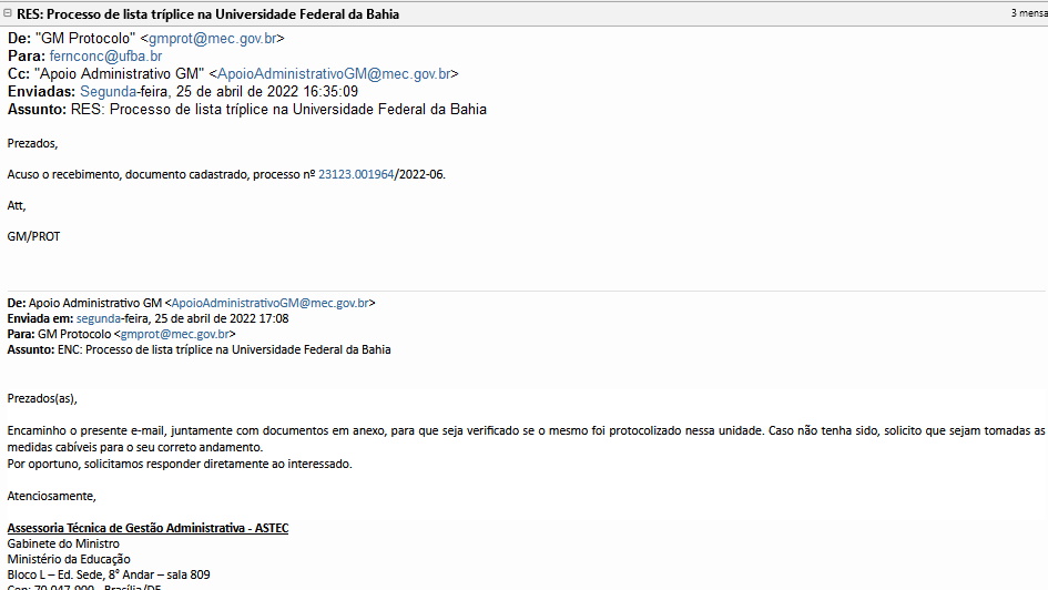 Já encontra-se, desde 25/04/22, no gabinete do Ministério da Educação em Brasília, representação formal em que este escrevinhador documenta o “vale-tudo” em que está se constituindo a “consulta prévia informal” para indicação à lista tríplice de reitor(a) e vice-reitor(a) da Universidade Federal da Bahia (UFBA), a ser enviada a partir de junho à livre nomeação do Presidente da República, como manda a lei.