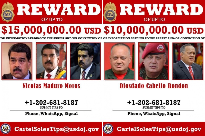 É público: desde 2020 o Departamento de Estado dos Estados Unidos da América (U.S.DoS) emitiu ordem de prisão de Maduro e uma dezena de seus principais, formalmente acusados de narco-terrorismo, tráfico de armas e corrupção.